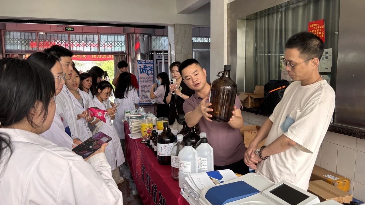在本次校園行中,小分隊現場為同學們解答儀器使用的常見問題;講解化學試劑的儲存要求及產品相關知識;化學試劑發生泄漏緊急處理程序及方式;了解同學們對實驗室所需的儀器、試劑的方向。傾聽大家對本次活動的意見和建議。